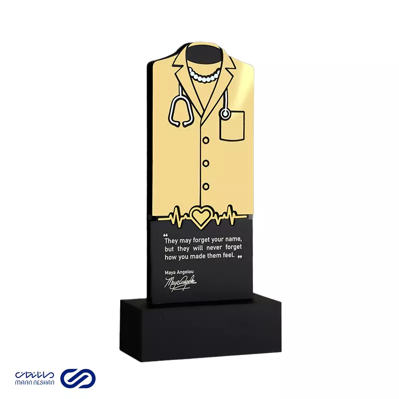 تندیس روپوش پزشکی زنانه طرح ۲ یک تندیس تخصصی و مفهومی در حوزه پزشکی است که با طراحی ساده و حرفه ای، نمادی از جایگاه و تلاش پزشکان و کادر درمان بانوان به شمار میرود. این تندیس پلکسی از متریال باکیفیت تولید شده و توسط مجموعه مانانشان بهصورت آماده و سفارشی قابل ارائه است. امکان تغییر در ابعاد و جزئیات طراحی متناسب با نیاز سازمانها وجود دارد و این محصول گزینهای مناسب برای مراسم تقدیر، همایشهای پزشکی و هدایای سازمانی بوده و زمان معمول ساخت آن حدود ۷ روز کاری میباشد.